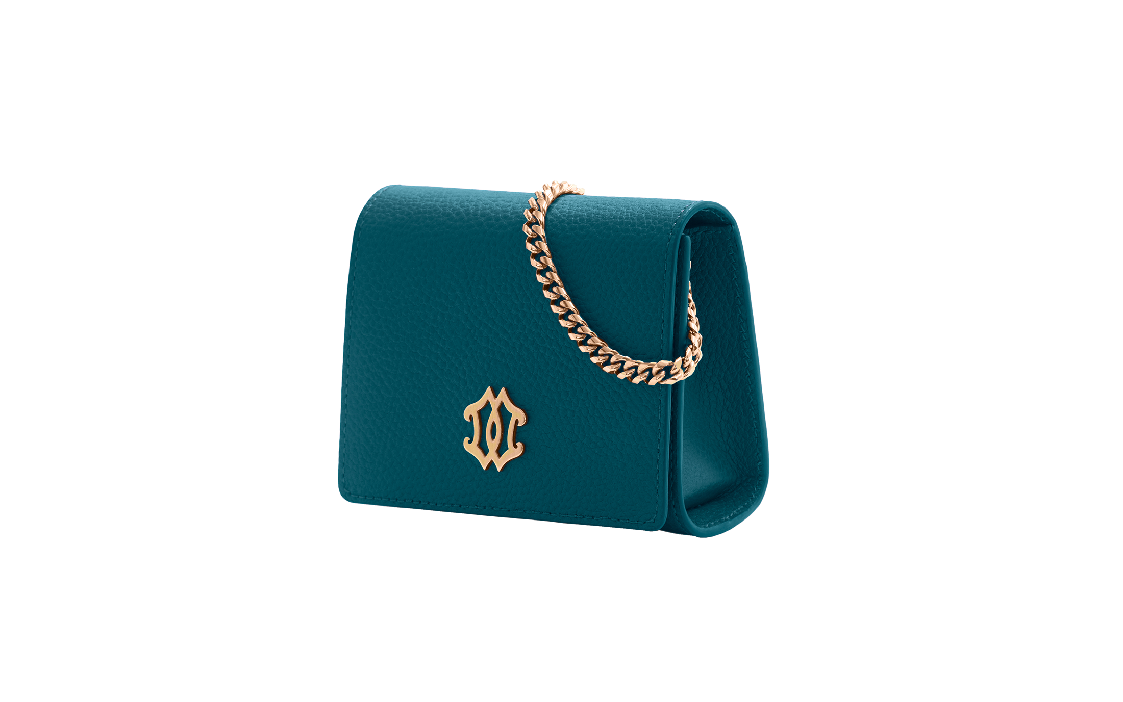 Naked mini wallet clutch on chain in green caviar leather